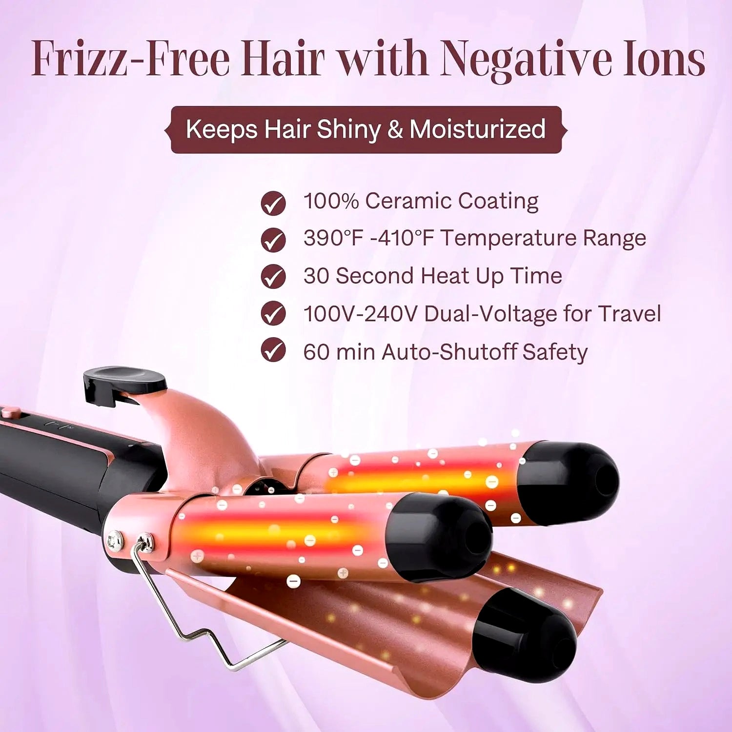 ✔️ All-in-One Styling Kit – 3 barrels (0.35”, 0.75-1.35”, 1.25”), 1 curling brush, heat-resistant glove, and clips included.